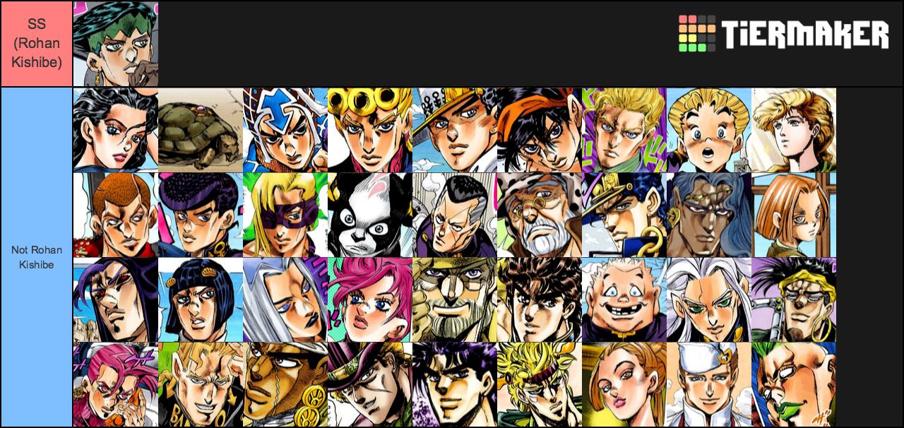 Jojo character tier list. Click savedownload and add a title and description. Check out other jojo characters tier list recent rankings. 1 according to trello the lesser the weight the rarer the stand tier 1. Edit the label text in each row. Jojos bizarre adventure characters. Jojo character tier list part 1 8 jojos bizzare adventure main characters parts 1 5.