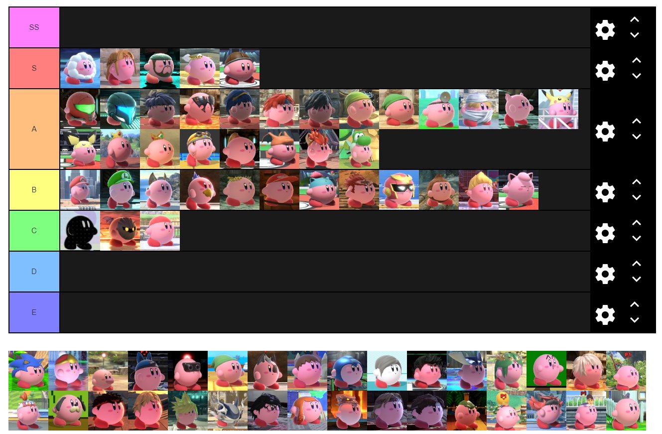 Super kirby clash 2019 kirbys extra epic yarn 2019 kirby star allies 2018 kirby battle royale 2018 kirby. Having a frame 6 killing command grab both out of shield and as another way for kirby to punish people for holding shield thanks to his absurdly safe and quick grounded options gives kirby potentially one of the most oppressive pressure games out of the entire cast. Right back at ya. Kirby game tier list. Kirby copy abilities kirby games tier list maker share template on twitter share template on facebook features every copy ability kirby has had throughout his games does not include final weapons you cannot use post ending or abilities from spin off games. Planet robobot 2016 kirby and the rainbow curse 2015 kirby.