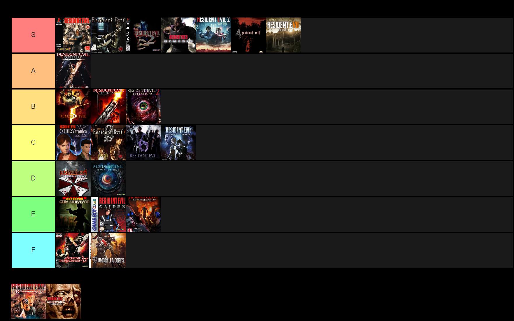 After finishing your video game related tier list check out these bracketfights. Use our resident evil games tier list template to create your own tier list. Do you agree with my tier list. A community for fans of the capcom series resident evil aka biohazard in japan. Edit the label text in each row. Log in sign up.